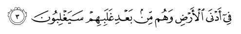 فِی أَدْنَى الْأَرْضِ وَهُم مِّن بَعْدِ غَلَبِهِمْ سَیَغْلِبُونَ