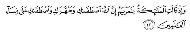 وَإِذْ قَالَتِ الْمَلَائِکَةُ یَا مَرْیَمُ إِنَّ اللَّهَ اصْطَفَاکِ وَطَهَّرَکِ وَاصْطَفَاکِ عَلَى نِسَاءِ الْعَالَمِینَ